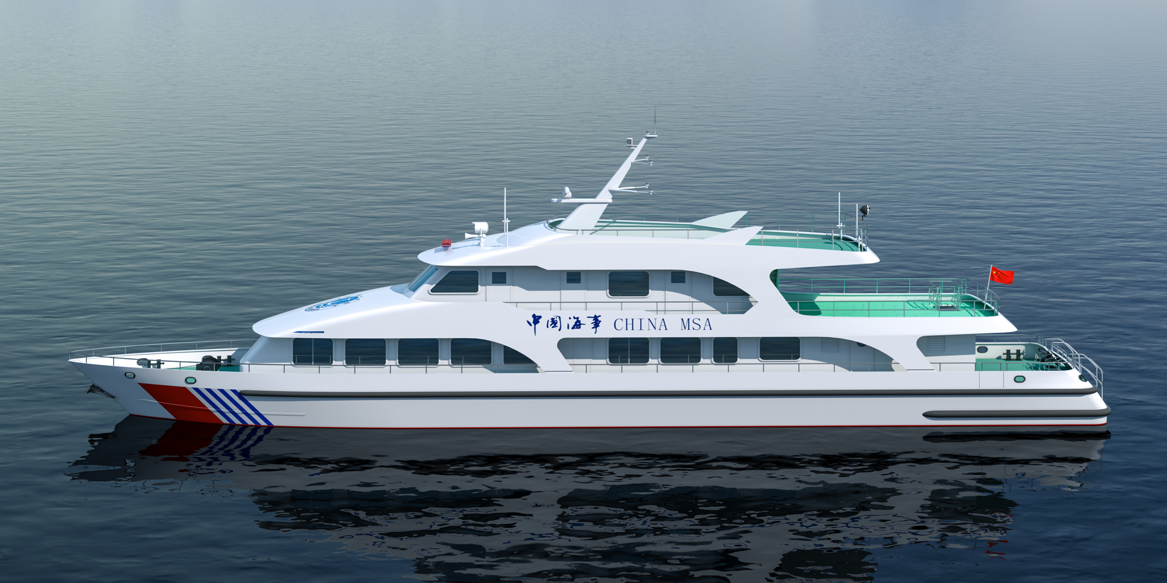 近日,武汉理工船舶中标30米级交通运输纯电动工作艇设计项目。该船用于内河水域公务执法工作,按内河B级航区进行设计,纯电池动力推进、配有五叶高效螺旋桨、采用尾部带短折角的V型圆舭、并设有方龙骨的方尾消波船型,具有良好的耐波性和操纵性。船舶总长30.88米,型深2.5米,型宽6米,在设计吃水条件下,推进电机输出额定功率,最大航速23km/h,巡航速度18km/h。