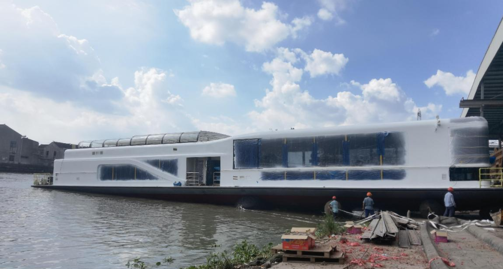 近日,由武汉理工船舶股份有限公司设计的“新黄龙”号40米锂电船在无锡宜兴陈东港码头顺利交付。该船从宜兴陈东港码头出发,进入京杭大运河,最终抵达杭州,并将于9月23日在第19届亚运会上正式亮相。